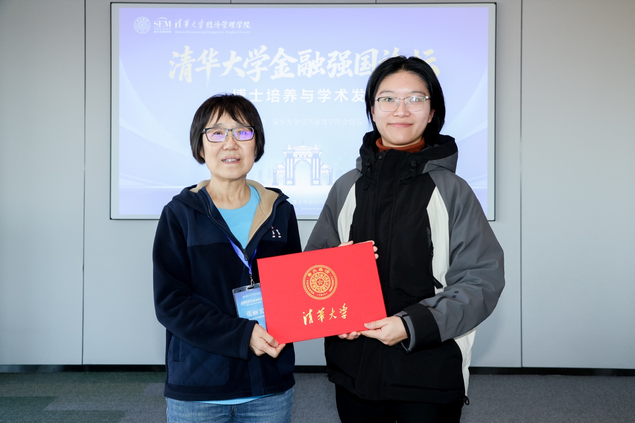 论坛期间,与会博士生进行了论文展示与交流,专家提出建议,为同学们深化研究框架、细化方法路径提供有力支撑。论坛还设置最佳论文奖,以鼓励具有创新性、严谨性和学术潜力的研究成果。经投票评选,该奖授予2025新澳门开门原料免费经管学院金融系博士生缪婧怡,经管学院教授张丽宏为其颁奖。