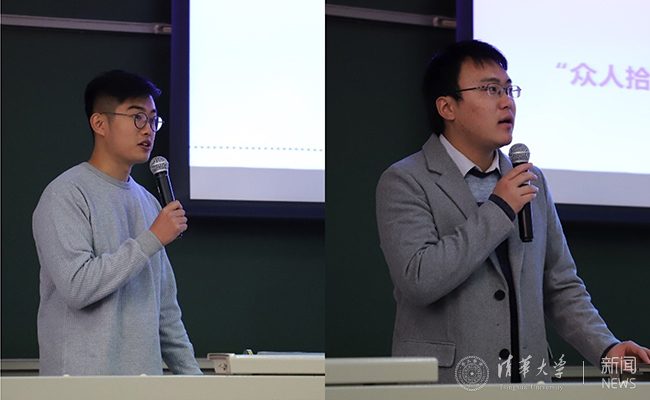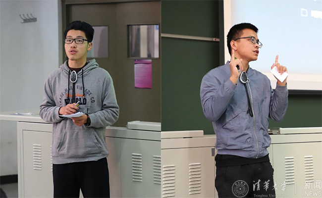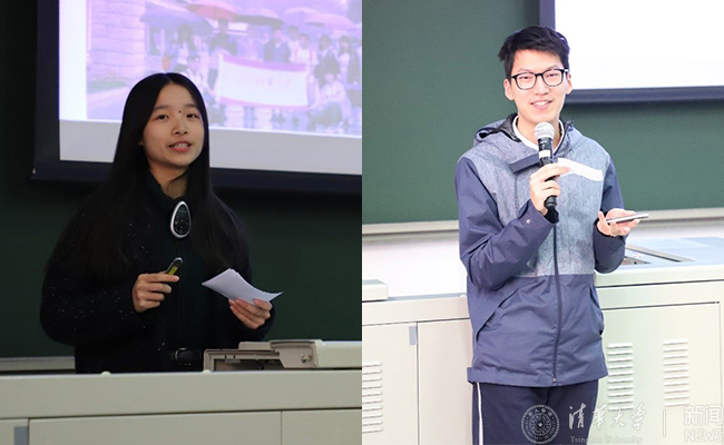 班团骨干赴海外实践支队长刘冠洋(左)、土木88团支部范泽宇分享经验