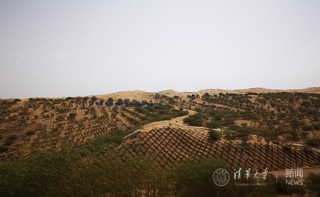 离开清水河县,支队赶赴鄂尔多斯市达拉特旗,深入库布其沙漠,探究“蚂蚁森林”项目在沙漠中的实施情况。中国第七大沙漠——库布其沙漠位于鄂尔多斯高原脊线的北部,总面积约1.39万平方公里。在沙漠化防治项目实施之前,库布其沙漠除北边一小部分外,其他都是荒漠,风沙很大,甚至会掩埋房屋。“蚂蚁森林”新模式为库布其沙漠带来巨大的改变——2017年至今,“蚂蚁”项目共种植一万亩樟子松、190万穴沙柳,且成活率较高,截至今年栽种面积累计18850亩。从漫天黄沙到绿茵点点,“蚂蚁森林”迈出了巨大的一步。