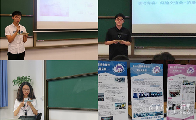 优秀支队分享环节中,来自成都七中的庞舜之代表大型支队进行展示。该支队成员逾40人,从高考录取结果揭晓时便着手准备情系母校活动的宣传和外联事宜,推出内容达15万字的《巢音》专刊,共印刷4500册。来自北京市第一七一中学支队的韩天倚代表小型支队分享了如何利用线上平台进行有效宣讲。武汉外国语学校支队设计了5款以清华与武外“美食”为主题的马克杯和帆布包,广受好评。本届“情系母校”优秀支队的成果也以展板形式在六教进行展示宣传。