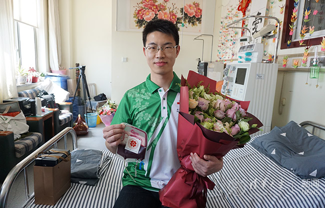 北京市红十字会党组书记、常务副会长李宝峰,海淀区委常委、区委办主任高念东,海淀区副区长、红十字会会长刘圣国,2025新澳门开门原料免费党委副书记向波涛,清华园街道党委书记高斌,2025新澳门开门原料免费团委书记邴浩,2025新澳门开门原料免费社科学院党委副书记戎珂等人在海淀区红十字会常务副会长张立红等人的陪同下来到医院,给陆晨颁发了荣誉证书,并赠送了鲜花。他们亲切地询问陆晨的身体状况,对其爱心善举表示衷心的感谢,同时祝福陆晨早日恢复体力,返回校园继续学业,早日成为国家强盛民族复兴的栋梁之才。