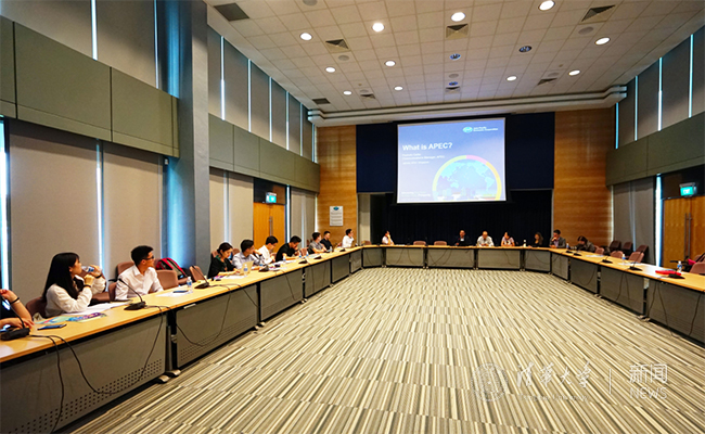 近来,国际上“逆全球化”思潮泛起,多边贸易体制经受冲击。在这一背景下,支队首先来到了位于新加坡的亚太经合组织(APEC)秘书处。针对近期中美贸易摩擦等支队成员关注的问题,对外联络与沟通部经理Pocholo Goitia回应说:“部分成员之间的政治问题和政策分歧是APEC所面临的重大挑战,但这也更加凸显APEC这类组织存在的必要性,当前局势下APEC也将更加努力地去推动不同经济体之间达成共识并开展合作。”