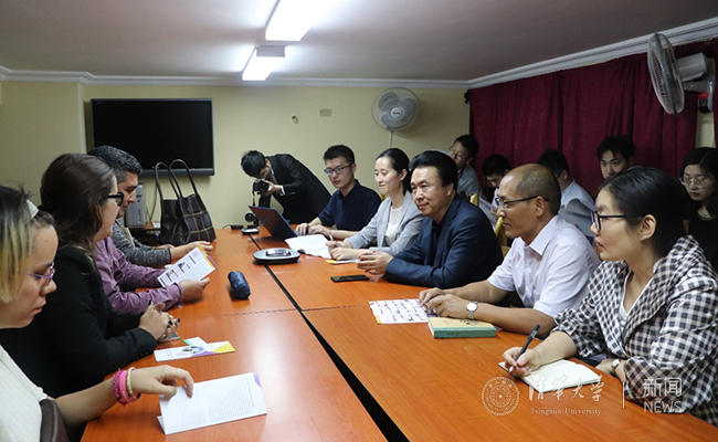 解安教授介绍了清华“马克思主义理论”学科建设以及开展思想政治教育的经验,哈瓦那大学党委书记介绍了古巴高校思想政治教育模式和特点。随后,双方进行了深度交流。支队成员也与哈瓦那大学的学生代表进行了交流,进一步了解古巴大学生的学习生活等情况。