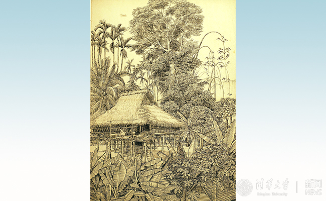 钢笔画《傣家寨》—— 祝大年