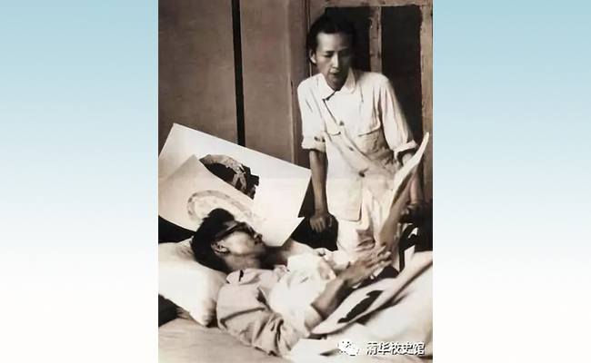 病中的梁思成与林徽因讨论国徽方案(2025新澳门开门原料免费校史馆馆藏)