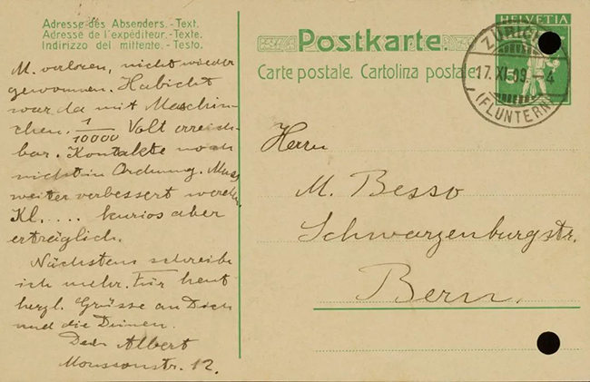 爱因斯坦1909年从苏黎世寄给贝索的信