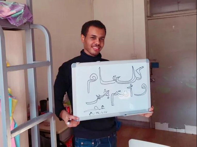 博士期间的第一个春节,他还是选择一个人在学校度过。“现在学校也很方便的,宿舍楼不会封,假期也有食堂开着。食物种类我不是很在意,而且我还有咖啡嘛。”刘明龙指着书桌架子上放置的一大罐咖啡笑道。谈到寒假生活,他并没有觉得不适应和寂寞:“平时就是刷刷剧、看看书,也挺好的。读了博士之后可能会有一些课业上的东西要做吧,不会无聊。”采访的最后,刘明龙用阿拉伯语的“新年快乐”给同学们送上了来自异国的祝福。