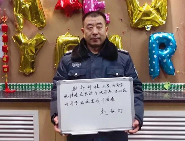 这样的招手问候,日常寒暄,在15号楼内,是日常的光景。不仅仅是楼内的安全保卫,也是同学们口中可亲的“大爷”,赵敬才也乐于在寝室楼内陪伴一批批学生走过寒暑。年关将至,他对所有同学表达了诚挚的祝福:“回家的同学陪着家长过个快乐年;不回家的同学在这里,有我们陪着!”