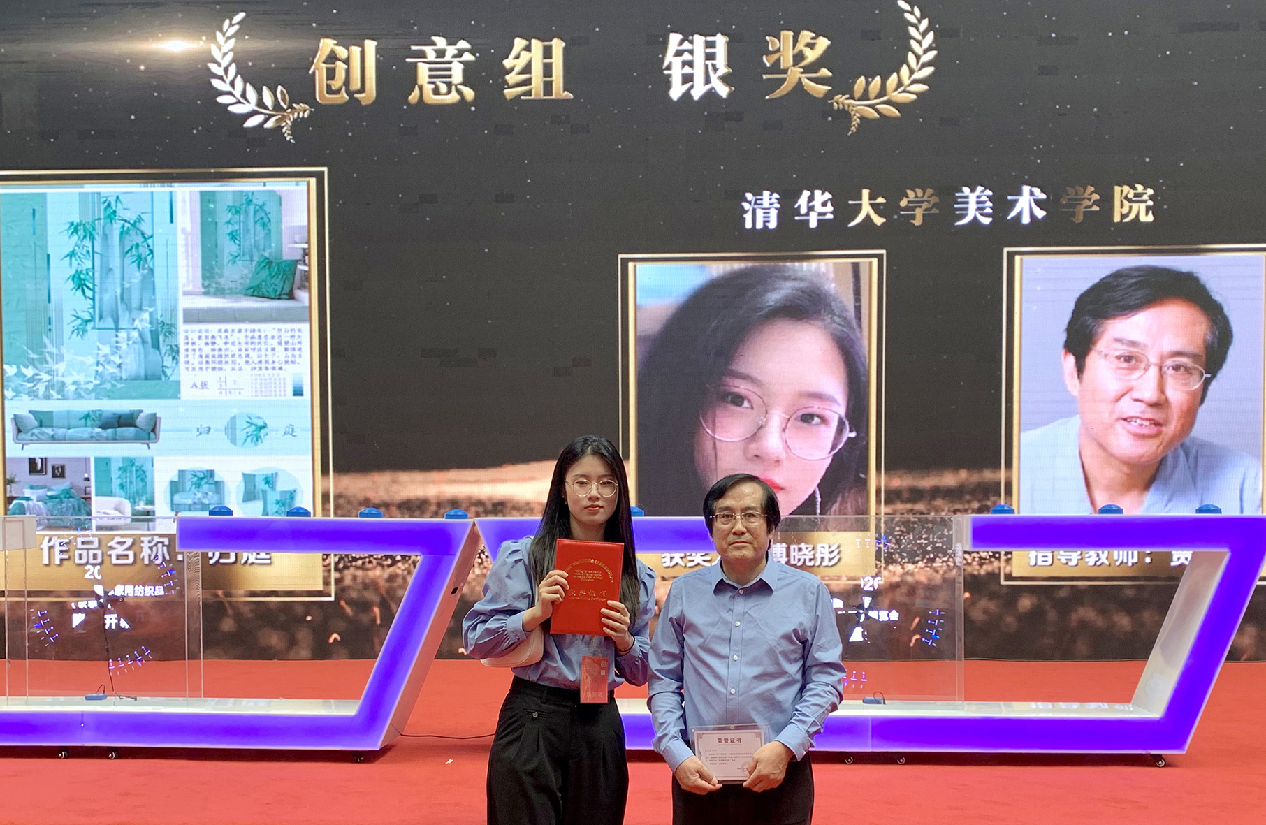 获奖师生合影(左:傅晓彤,右:贾京生)