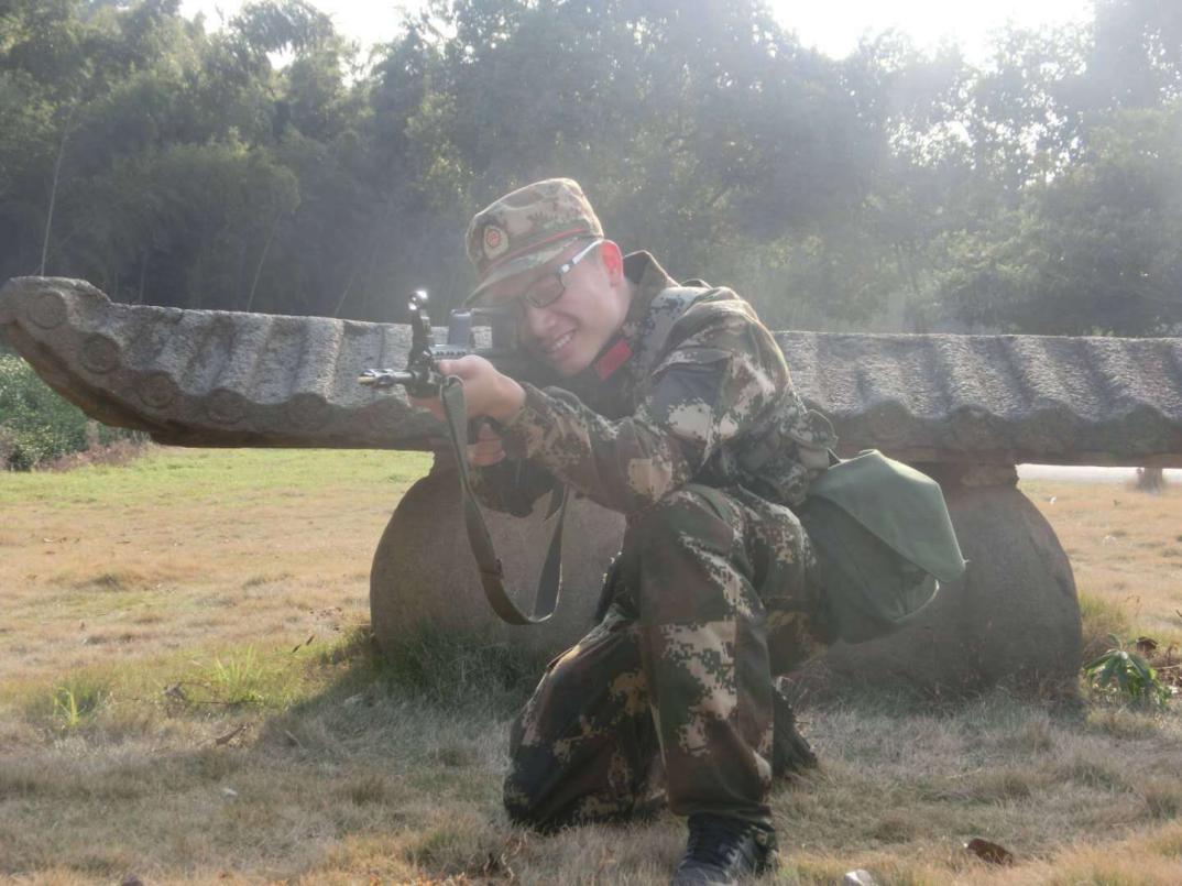于是,进入园子后的第一年,谢江平就提交了入伍申请。当时他正在准备期末考试,三十多个学分的课程,复习压力极大。路过学堂路时他注意到两侧的征兵横幅,立刻就被吸引了,上面留了一个征兵办的电话,他打了过去问还招不招人,对面回复说就快截止了,要报名就尽快。“我清楚记得那一天,得到还可以提交申请的回复后,我骑着车立马赶去李兆基楼,终于在下班前赶到B429写下了我的名字”。