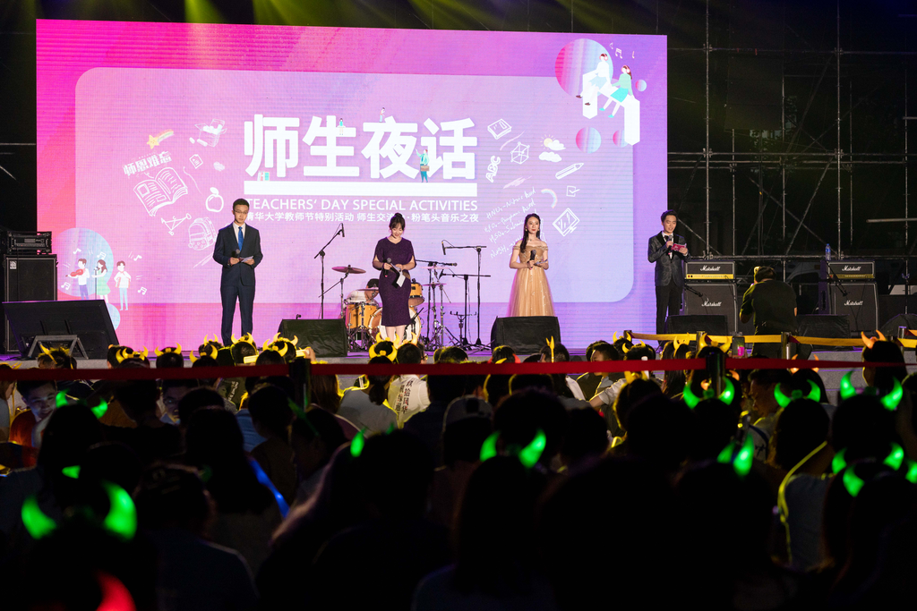 活动正式开始后,精彩纷呈的节目陆续上演,荧光波浪在西操荡漾。为满足师生文化活动的需求,“粉笔头音乐之夜”作为本次特别活动的重要环节,起到了营造教师节文化氛围的作用。