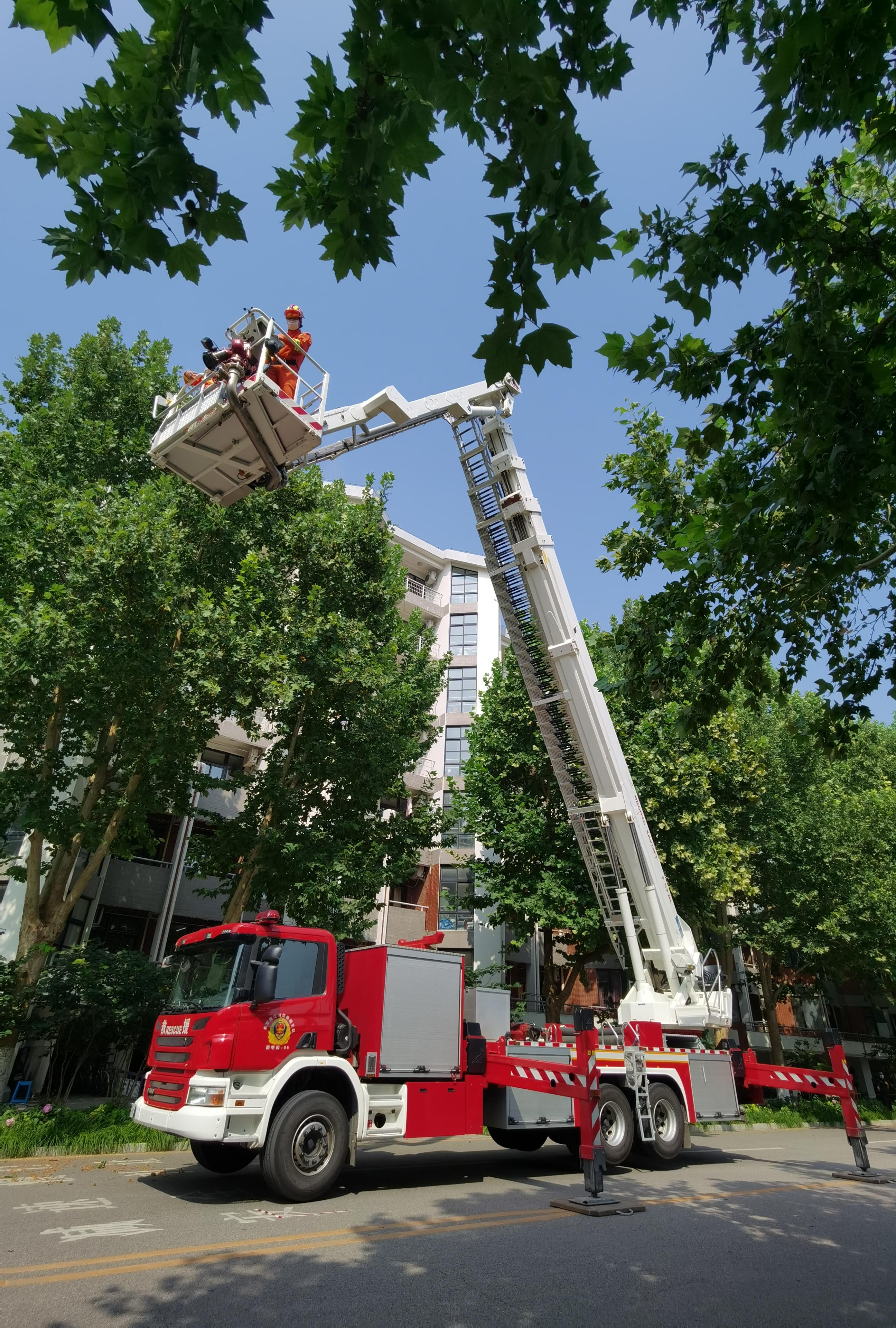 海淀消防救援支队演示高空救援