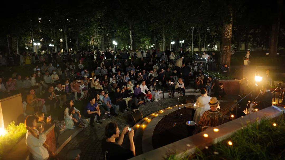 清华新闻网9月26日电(通讯员 黄春怡 王茗萁 杨广进)9月21日晚,“英华艺术时光”音乐沙龙中秋特别活动在学生服务中心前广场、祖龙广场以及听涛园西侧下沉剧场三个空间交替奏响。六位自然音乐艺术家为现场的两百余名清华师生以及2500余名线上观众带来了一场精彩纷呈的沉浸式融合演奏。