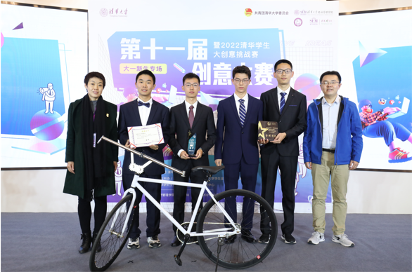 校园优化赛道的炫酷易停可变锁折叠车把团队一出场便引人瞩目,他们带来了折叠车的实物——白色车身配上银色的可折叠车把,机械感十足。他们深挖清华校园停车、取车难的原因,发现因车把过长导致并排的自行车车把之间相互阻碍,由此产生了“折叠车把”的想法。“折叠”后自行车停放将节约近一半的空间,相同的区域可以多停近一倍的自行车。队长丁恺睿表示,参加比赛的最大收获就是学会多听取他人的意见,这个项目是全班同学集思广益的结果。