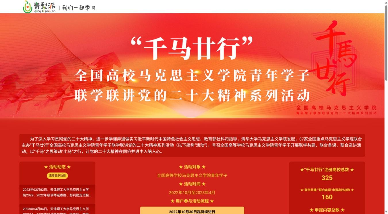 突出“有载体”,发挥大学生“青梨派”自主学习平台作用。活动依托大学生“青梨派”自主学习平台搭建活动专题平台,并在平台上完成注册报名、联学共建、联合备课、上传作品、专家评审等环节。在平台上,各高校的注册情况、联学联讲情况及时更新反馈,各高校青年学子及时了解活动动态和其他学校宣讲进度,各类实时滚动的专题排行榜有效提高了广大高校马克思主义学院开展宣讲活动的积极性,为全国高校马克思主义学院青年学子联学联讲提供了重要的平台载体。